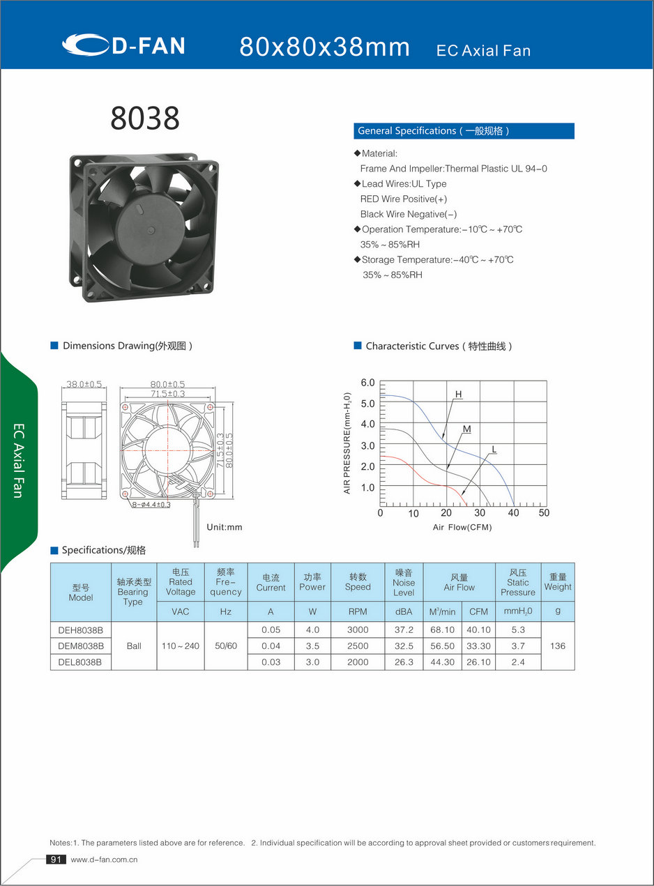 EC軸流風扇-8038曲線外觀圖